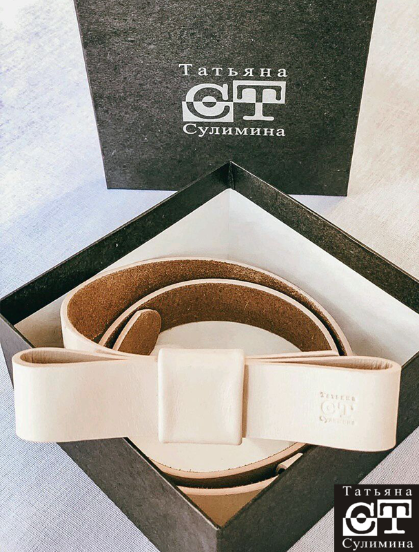 Пояс из натуральной кожи Бант (бежевый)
