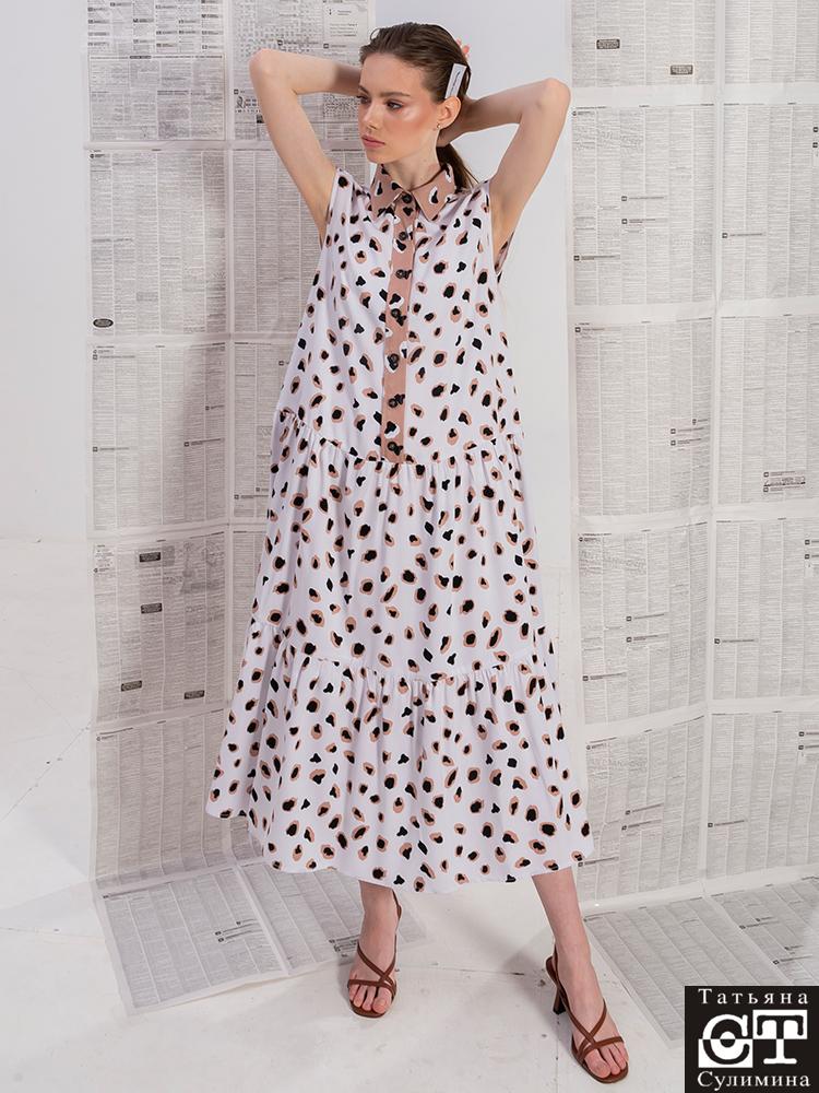 Платье-рубашка ярусы миди